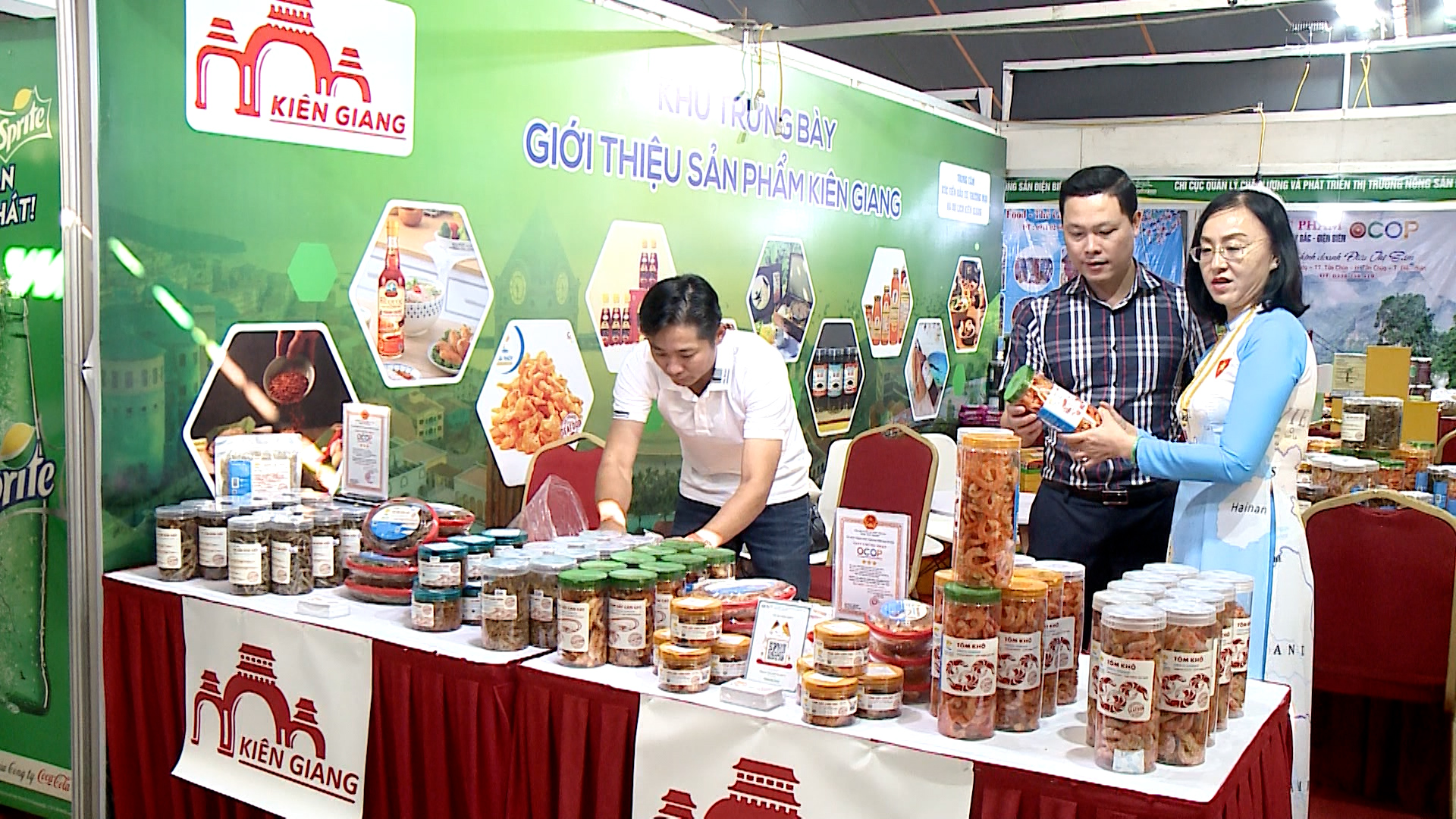 Khu trưng bày giới thiệu thành tựu, sản phẩm của khu vực KTTT, HTX tại sảnh hội trường.